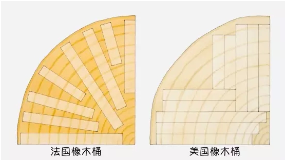 在處理方法上,法國橡木桶一般是按照紋理切割,對橡木利用率較低(20%左右),而美國橡木桶對橡木的利用率可達50%左右。